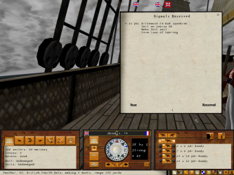 All ships in the game apart from the player's - friendly and enemy - are controlled by the AI. The player can direct the actions of other ships in his squadron or fleet - if he has sufficient rank - by sending them signals, defining orders which the AI will then attempt to follow. Conversely, the player may himself receive signals from his superiors, defining objectives which he must attempt to fulfil. These signals include options for formation, course, set of sail, and which enemy forces to attack, and use a simplified system similar to that used by real navies of the time.
